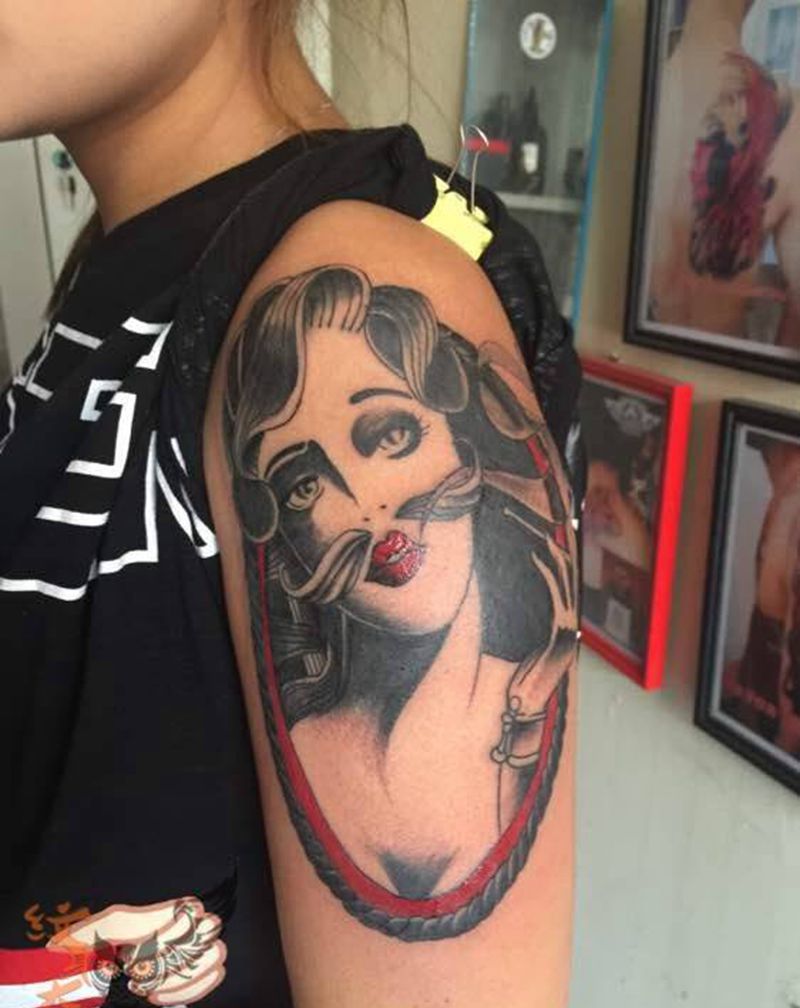 当前位置: 首页 >山东省济南市纹身店-太子纹身纹身图案>小美女,很坚强纹身图片_手臂成品欧美纹身图案