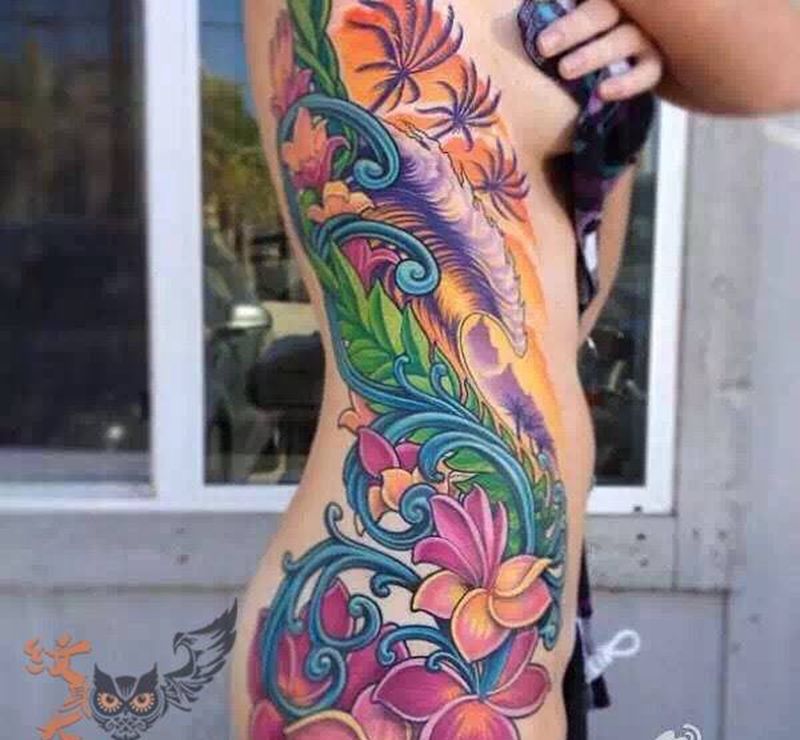 • 女性大花胸纹身_43张霸气漂亮的女性大花胸纹身图案作品