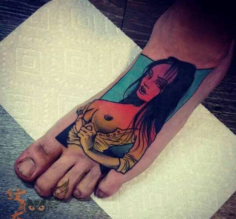 • T包小腿吹火男+阿多福纹身图片_腿部老传统新传统吹火男阿