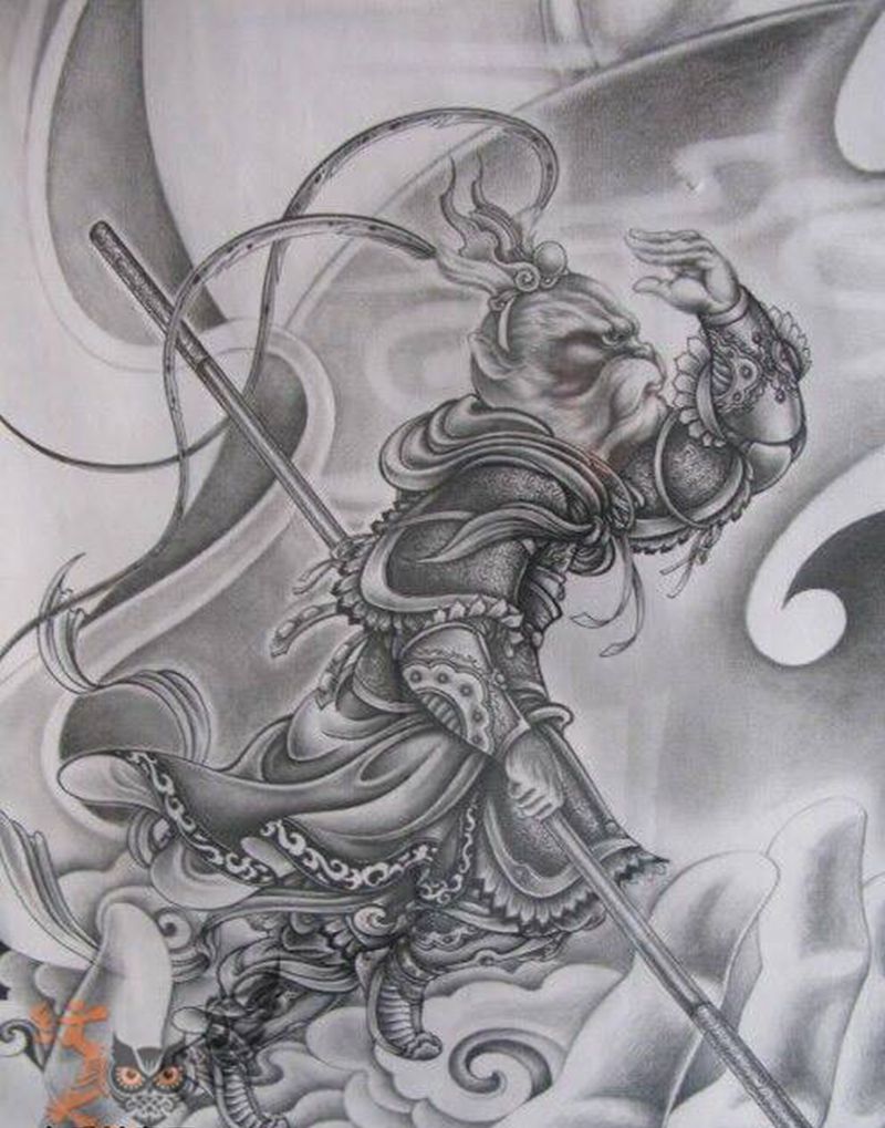 黑灰满背纹身图案