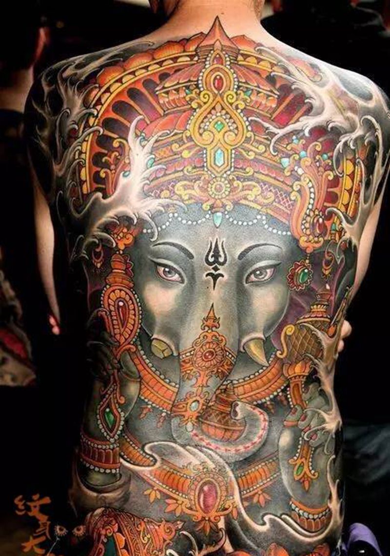 当前位置: 首页 >山东省济南市纹身店-太子纹身纹身图案>象神纹身图片_成品肩部腿部背部习俗传统宗教动物纹身图案