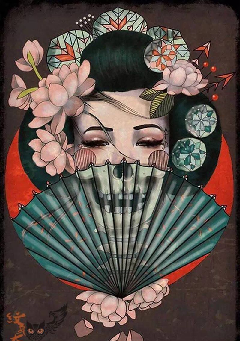 艺妓纹身图片_手稿肩部腰部背部腿部手臂胸部清新肖像人物纹身图案