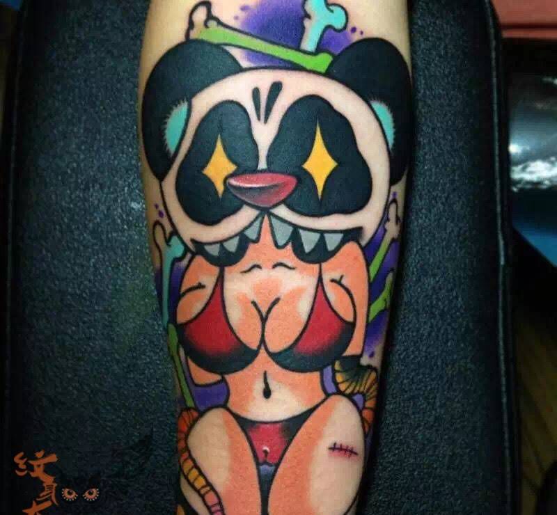 • T包小腿吹火男+阿多福纹身图片_腿部老传统新传统吹火男阿