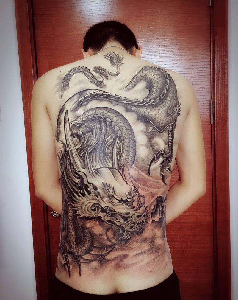 满背龙纹身图片_成品背部传统习俗图腾纹身图案