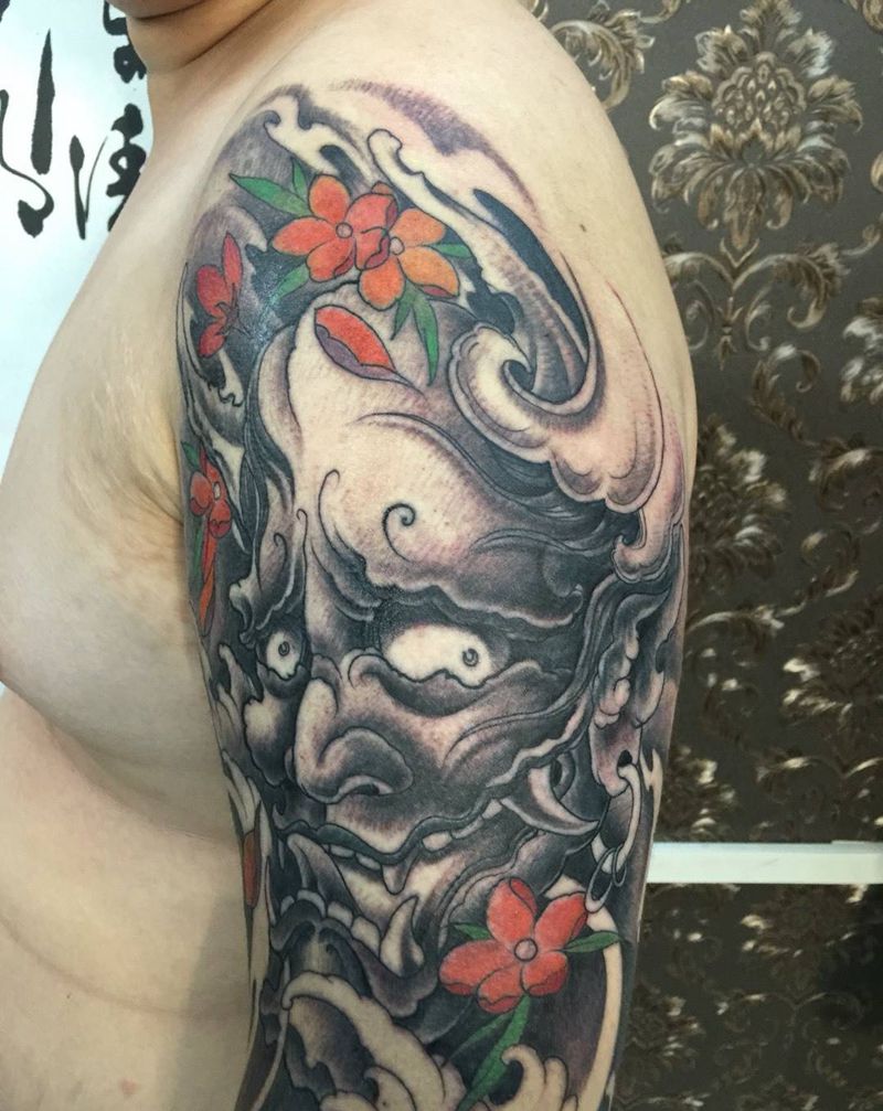 般若纹身图片_成品肩部传统鬼神宗教纹身图案