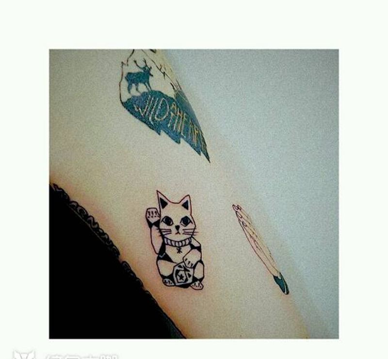 • T招财猫纹身图片
