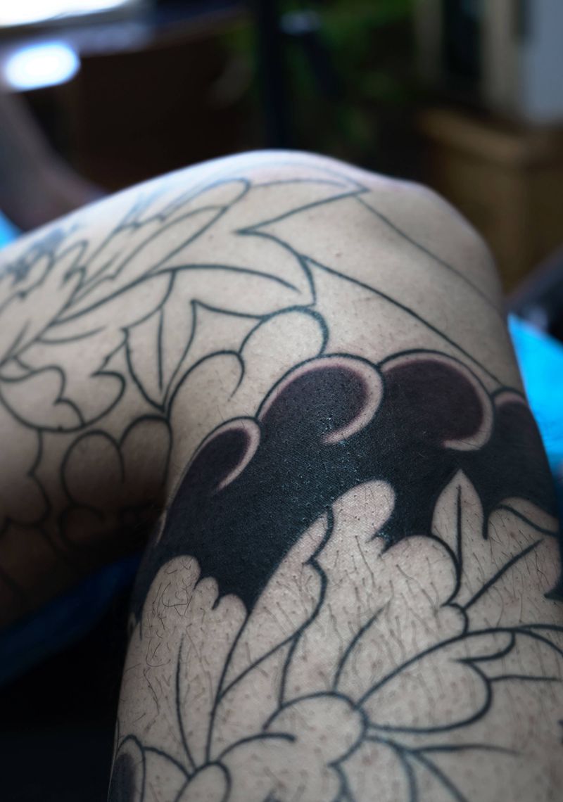 • T网红王老大花腿龙纹身图片_腿部新传统纹身图案