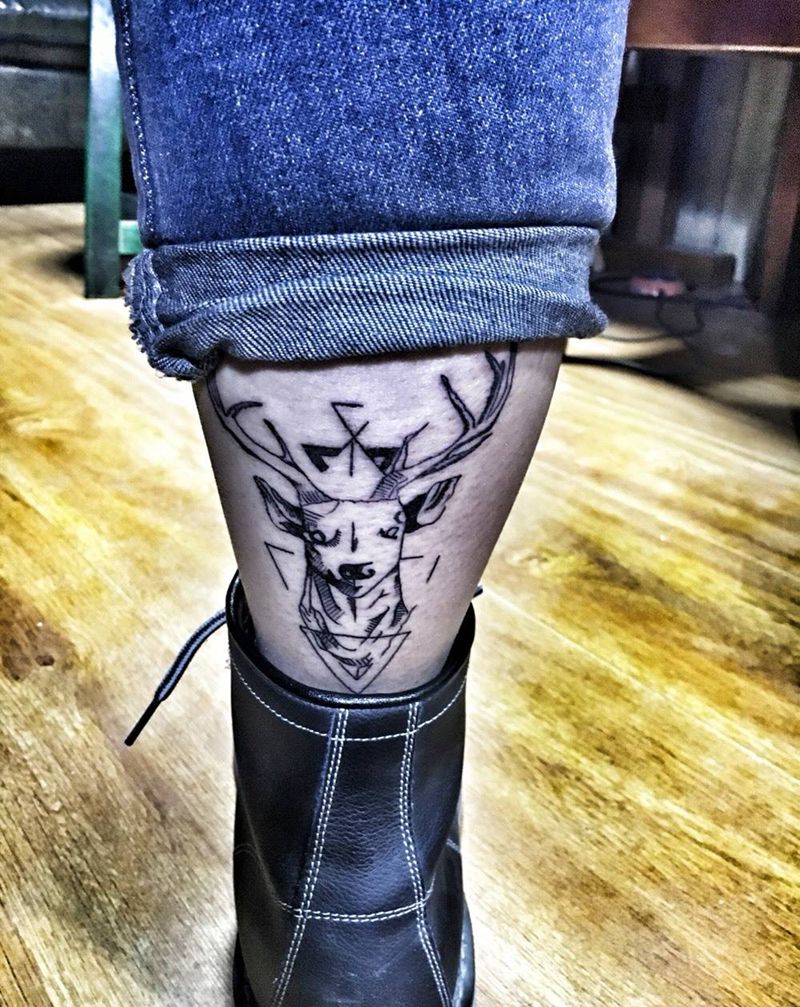 几何鹿纹身图片_成品腿部胸部肩部颈部传统原创几何背部手臂纹身图案