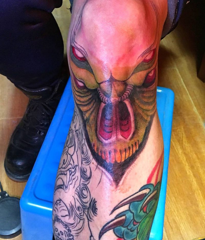 • T网红王老大花腿龙纹身图片_腿部新传统纹身图案