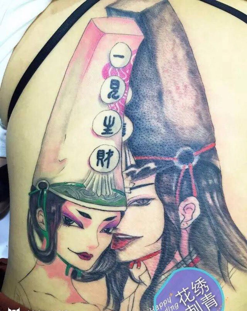 当前位置: 首页 >山东省济南市纹身店-花绣刺青纹身图案>黑白无常纹身图片_原创欧美背部成品纹身图案