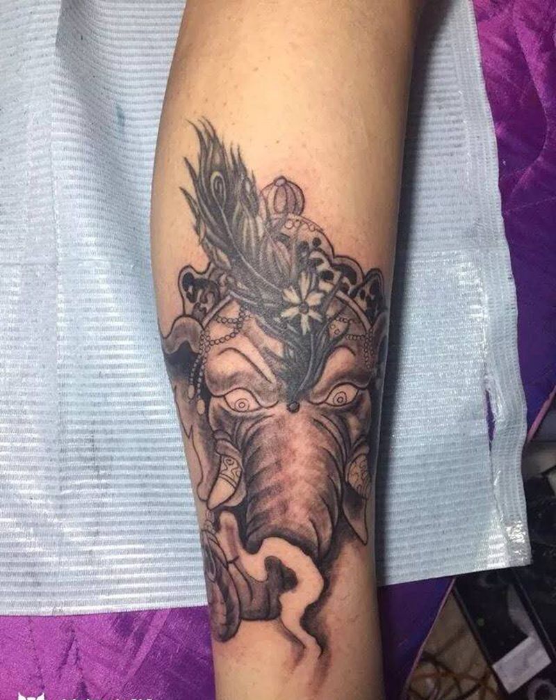 当前位置: 首页 >山东省济南市纹身店-花绣刺青纹身图案>象神遮盖羽毛纹身图片