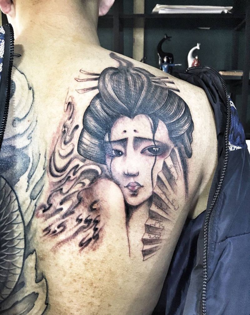 当前位置: 首页 >山东省济南市纹身店-花绣刺青纹身图案>艺妓纹身图片_成品背部胸部肩部腰部传统人物原创手臂写实纹身图案
