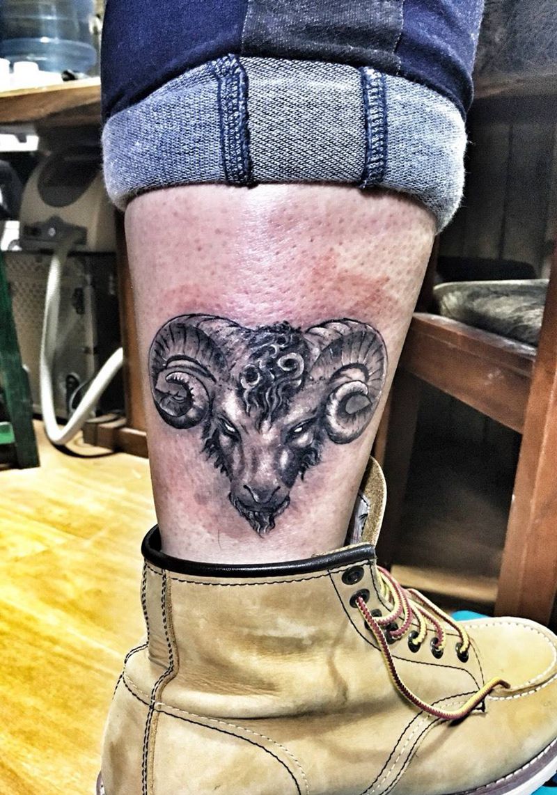羊头纹身图片_成品手稿原创动物传统写实腿部腰部肩部颈部纹身图案