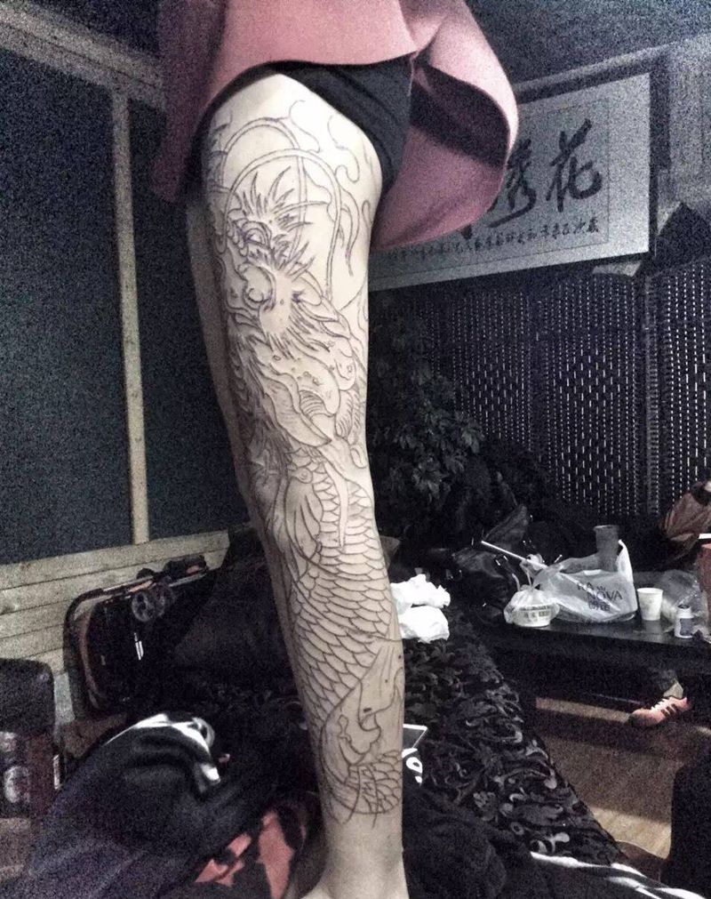 • T网红王老大花腿龙纹身图片_腿部新传统纹身图案