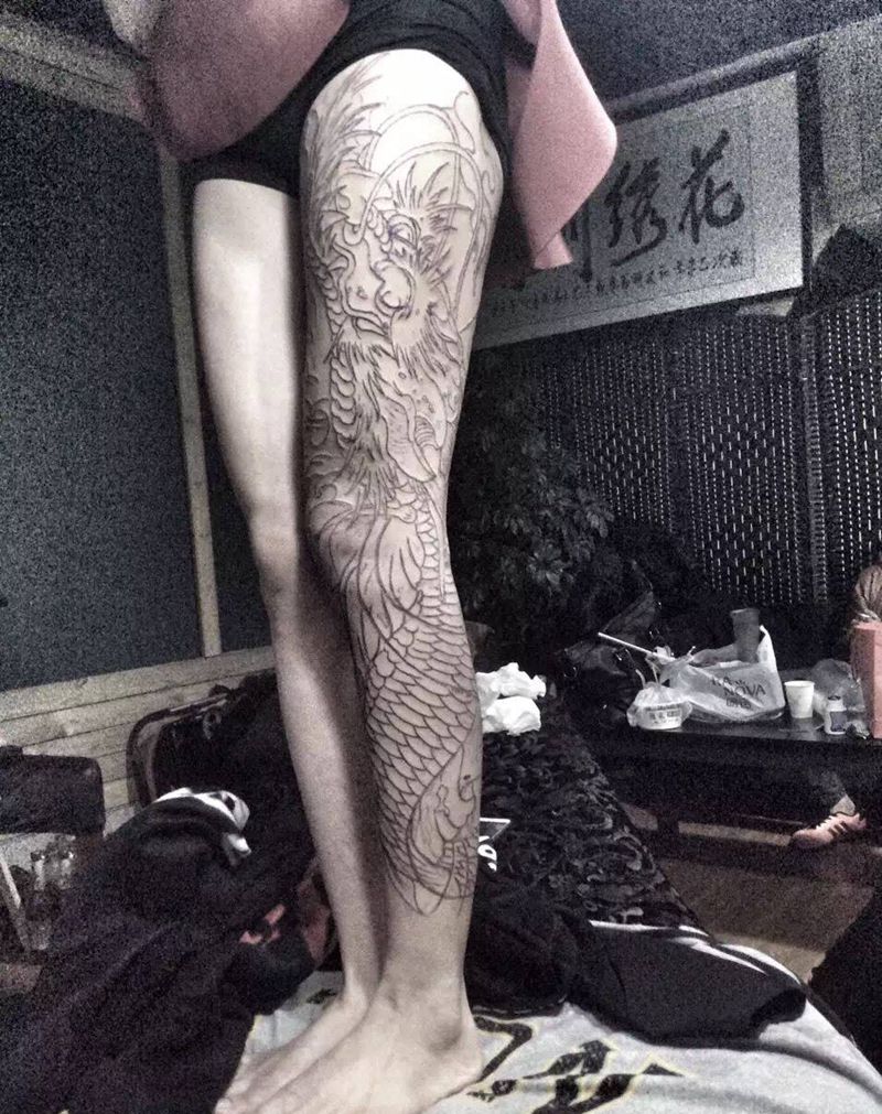 • T网红王老大花腿龙纹身图片_腿部新传统纹身图案