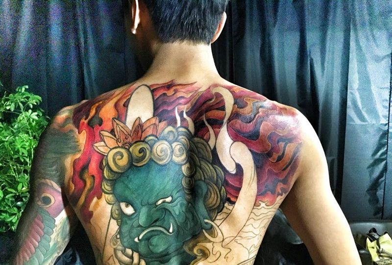 满背不动未完待续纹身图片_手稿成品背部胸部腿部手部传统原创人物宗教纹身图案