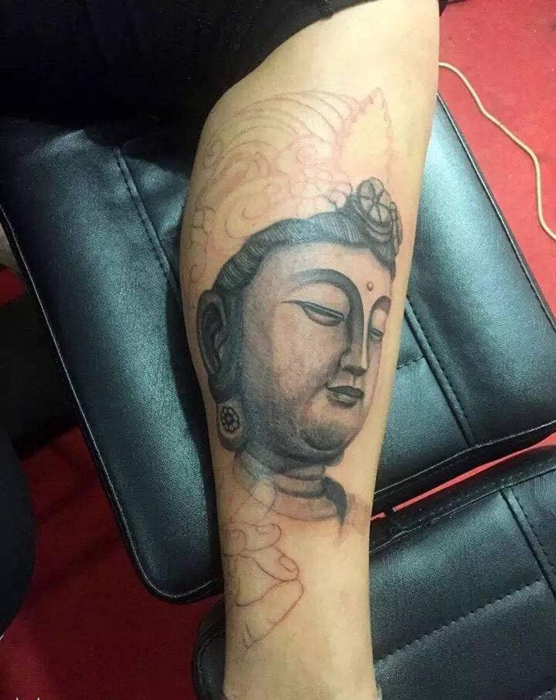 当前位置: 首页 >山东省济南市纹身店-花绣刺青纹身图案>佛头包小腿纹身图片