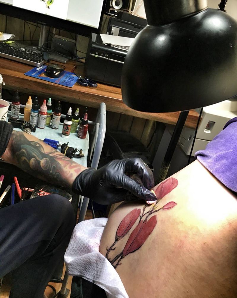 木棉花纹身图片_成品传统欧美植物原创肩部腰部腹部背部腿部纹身图案