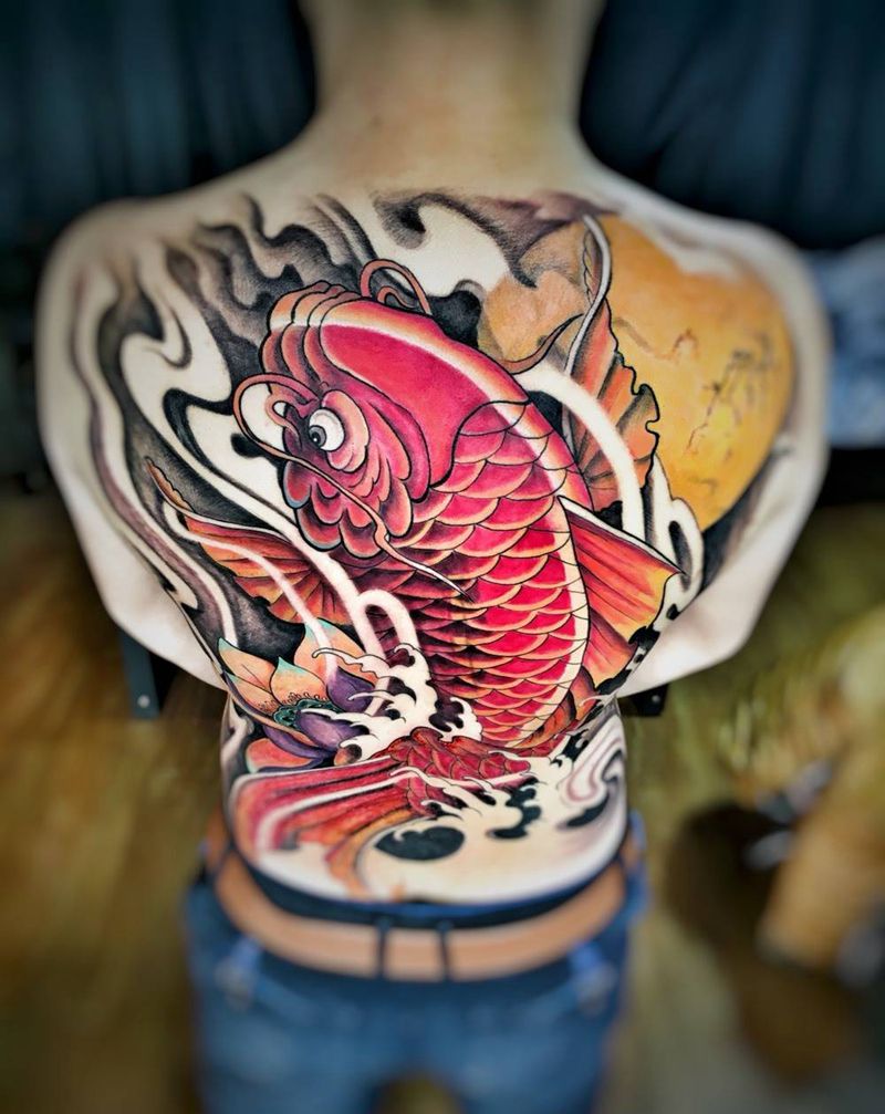 满背鲤鱼纹身图片_原创传统腿部背部胸部肩部颈部成品手臂腰部纹身图案