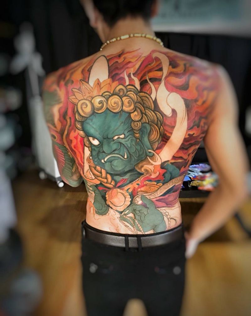 黑灰满背纹身图案