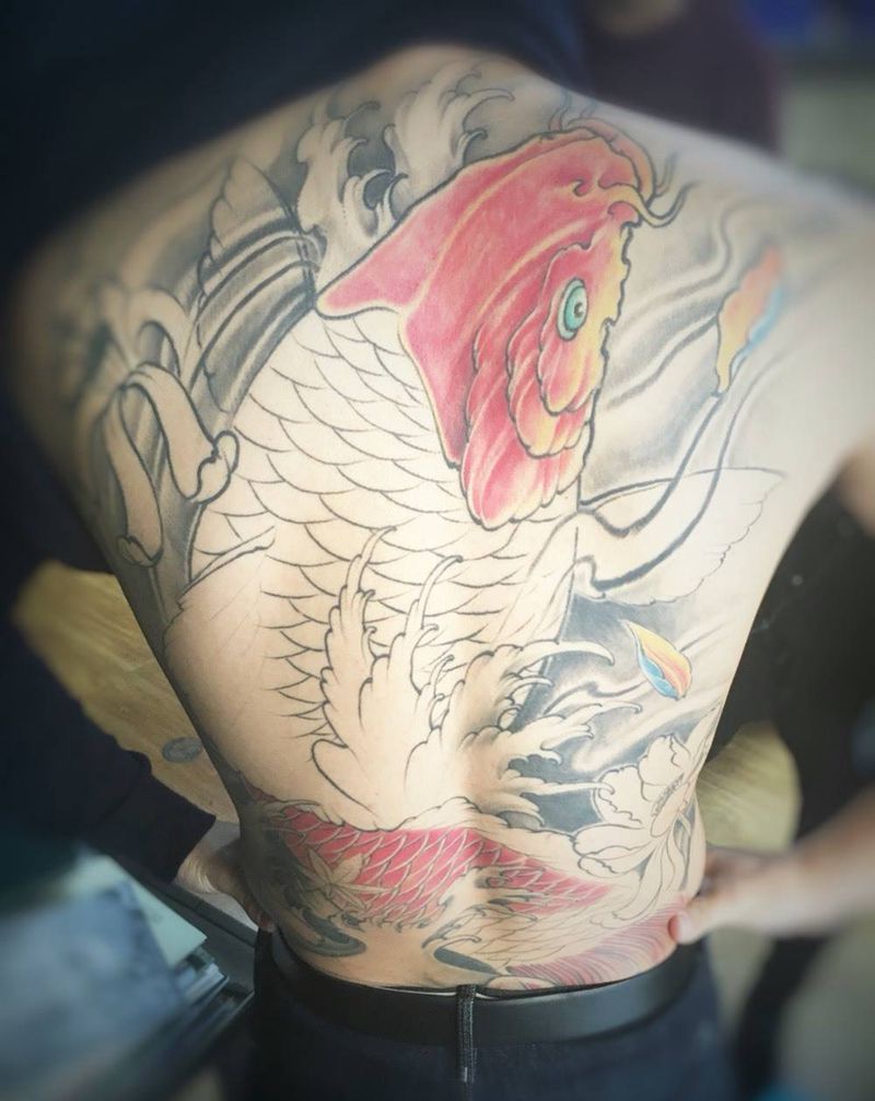 满背修改鱼纹身图片_成品肩部胸部背部腰部腹部手臂腿部传统原创纹身图案