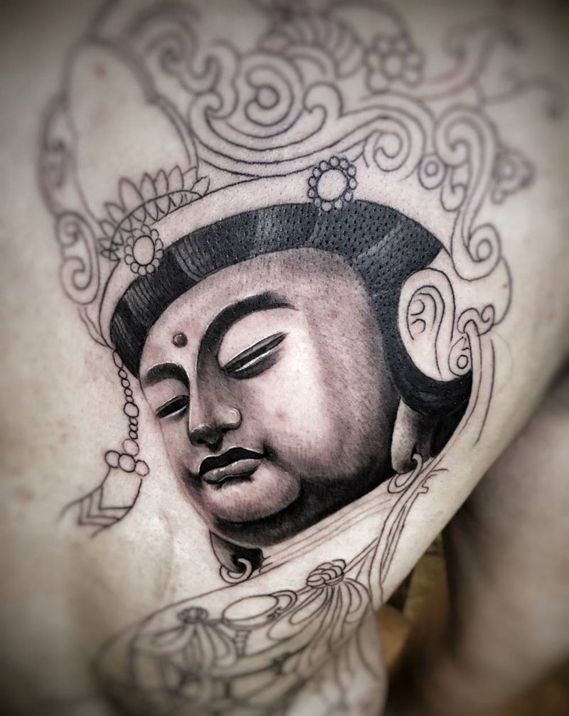 满背菩萨纹身图片_成品腿部背部胸部腰部人物原创传统纹身图案
