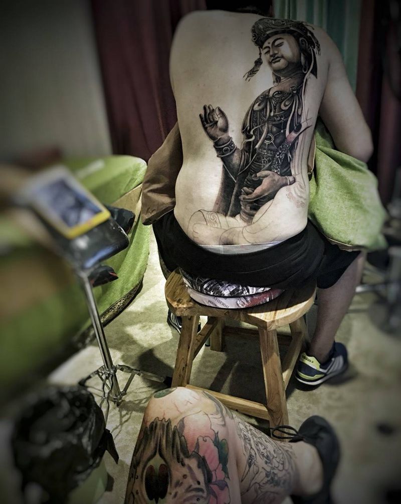 满背菩萨纹身图片_成品腿部背部胸部腰部人物原创传统纹身图案