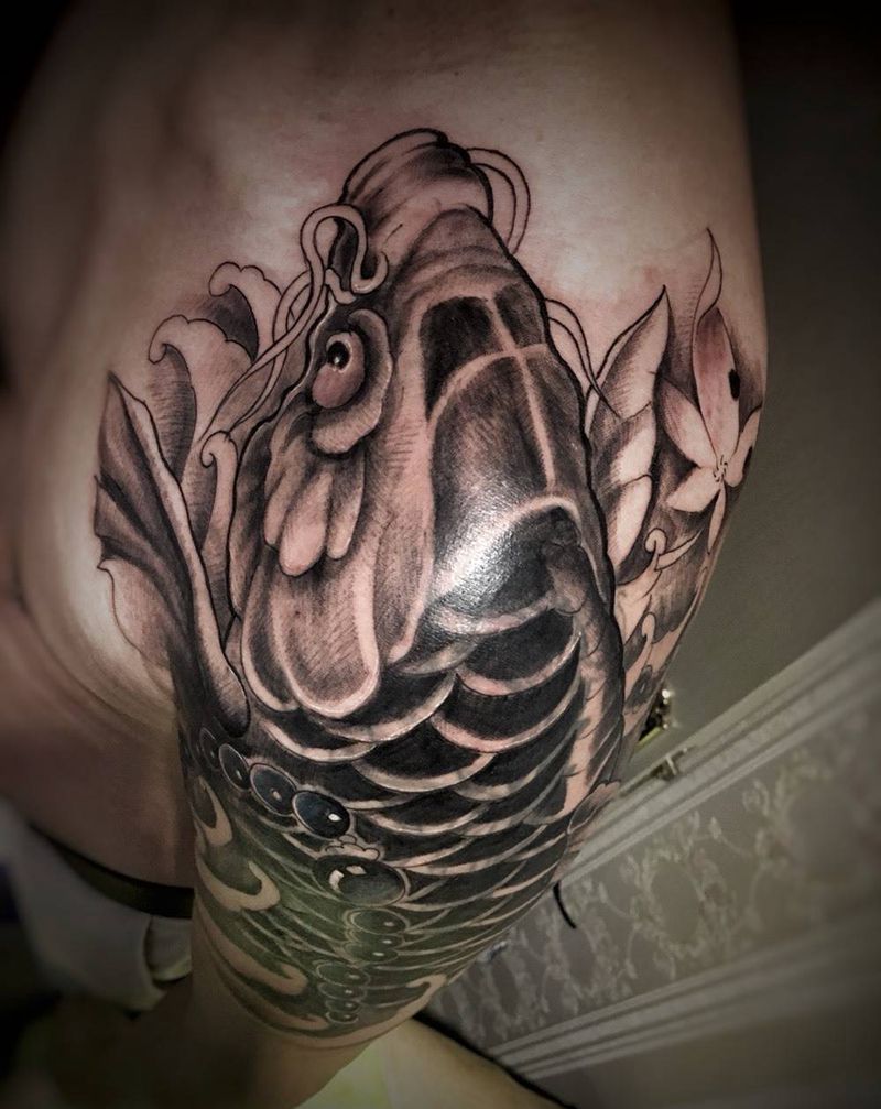 大臂鲤鱼遮盖纹身图片_原创传统成品手臂腿部背部纹身图案
