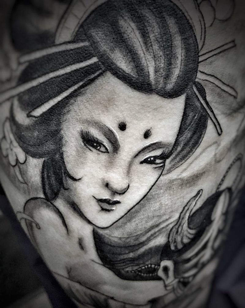 当前位置: 首页 >山东省济南市纹身店-花绣刺青纹身图案>艺妓纹身图片