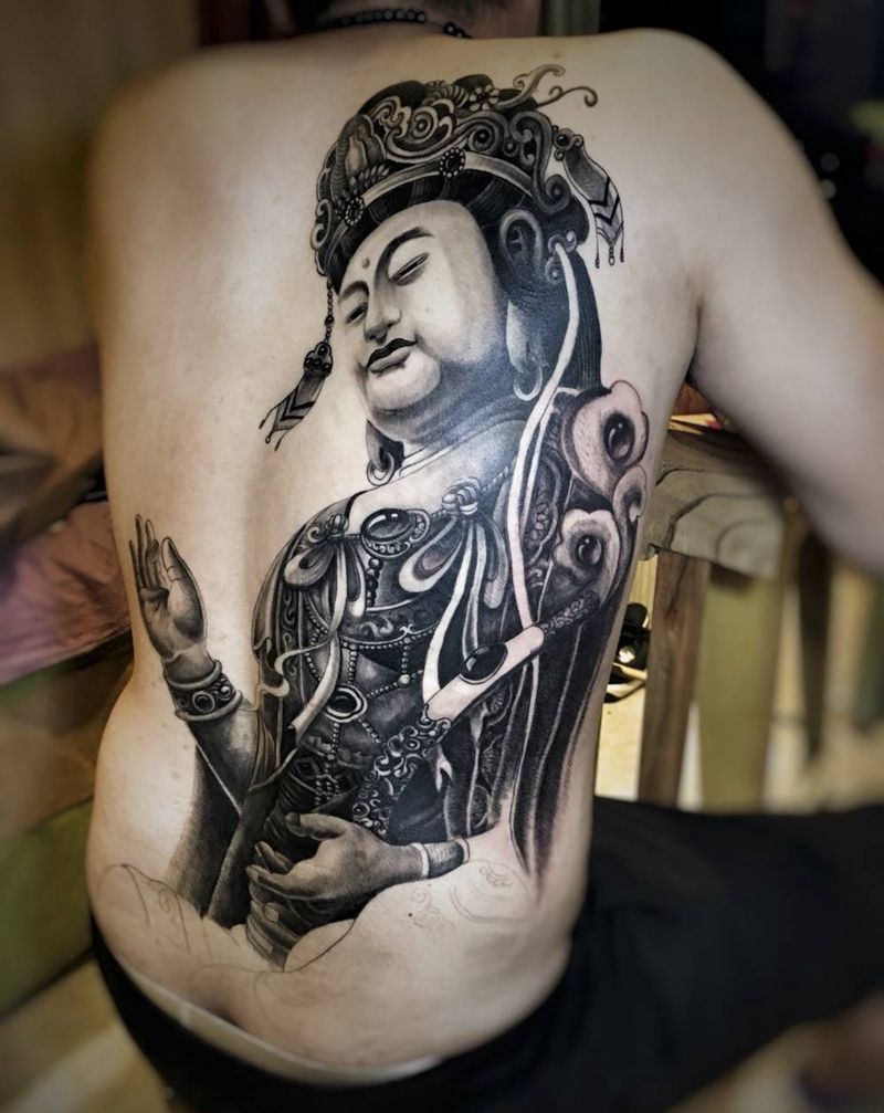当前位置: 首页 >山东省济南市纹身店-花绣刺青纹身图案>满背菩萨纹身图片_原创传统肖像背部腿部手臂腰部成品纹身图案