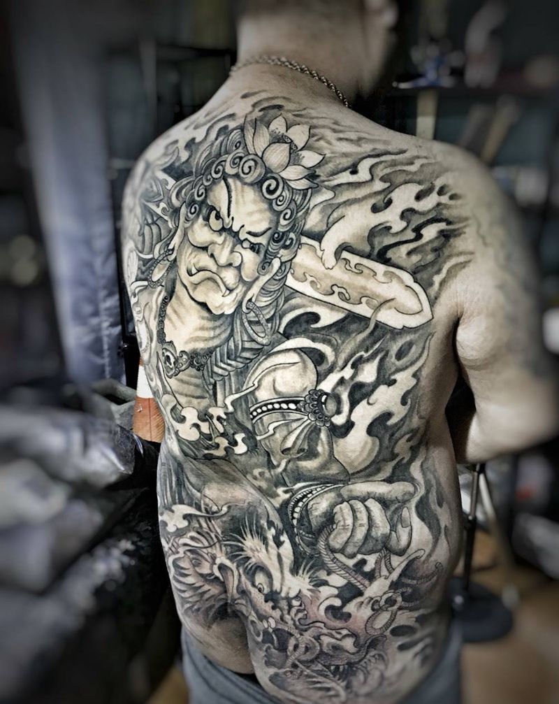 • 黑灰满背纹身图案