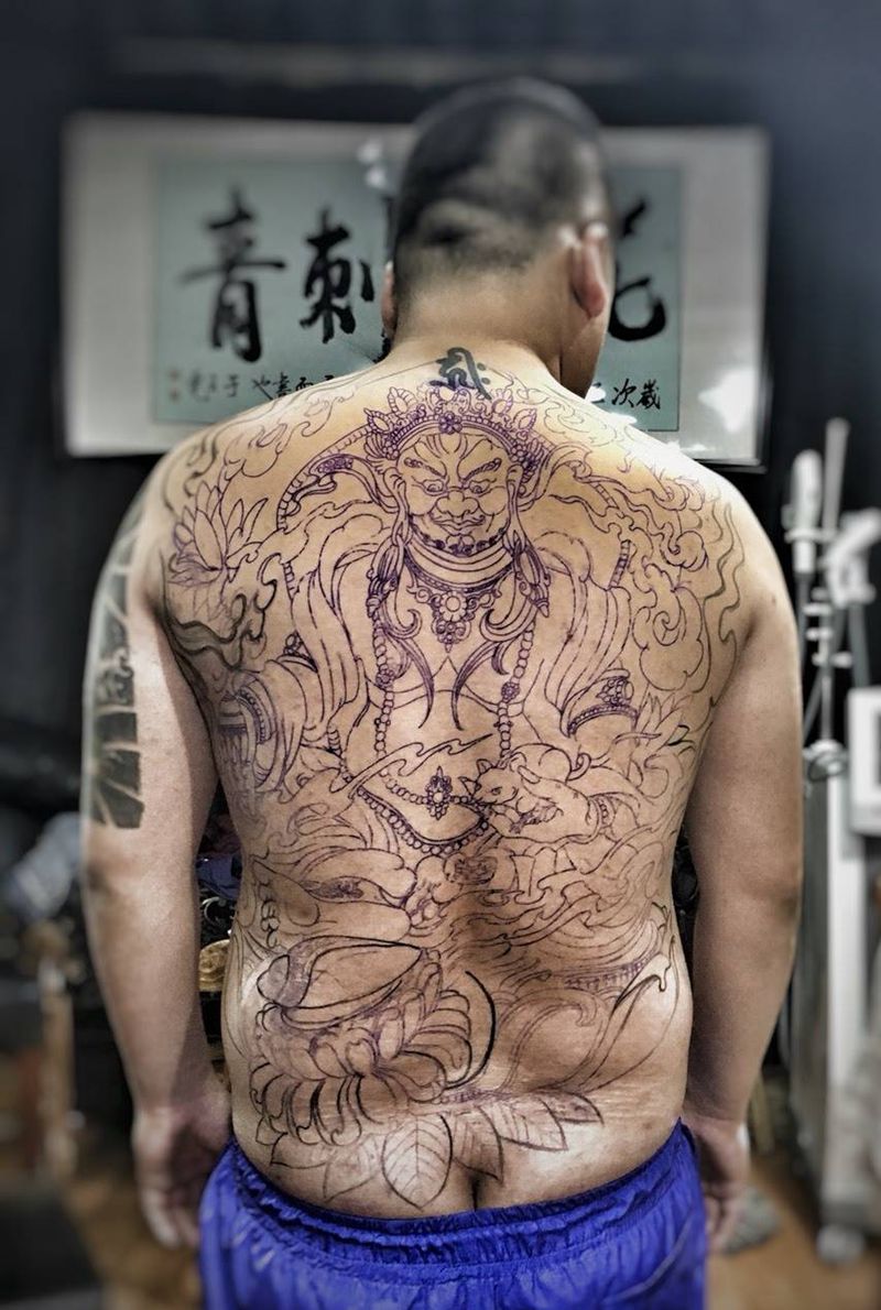 黑灰满背纹身图案