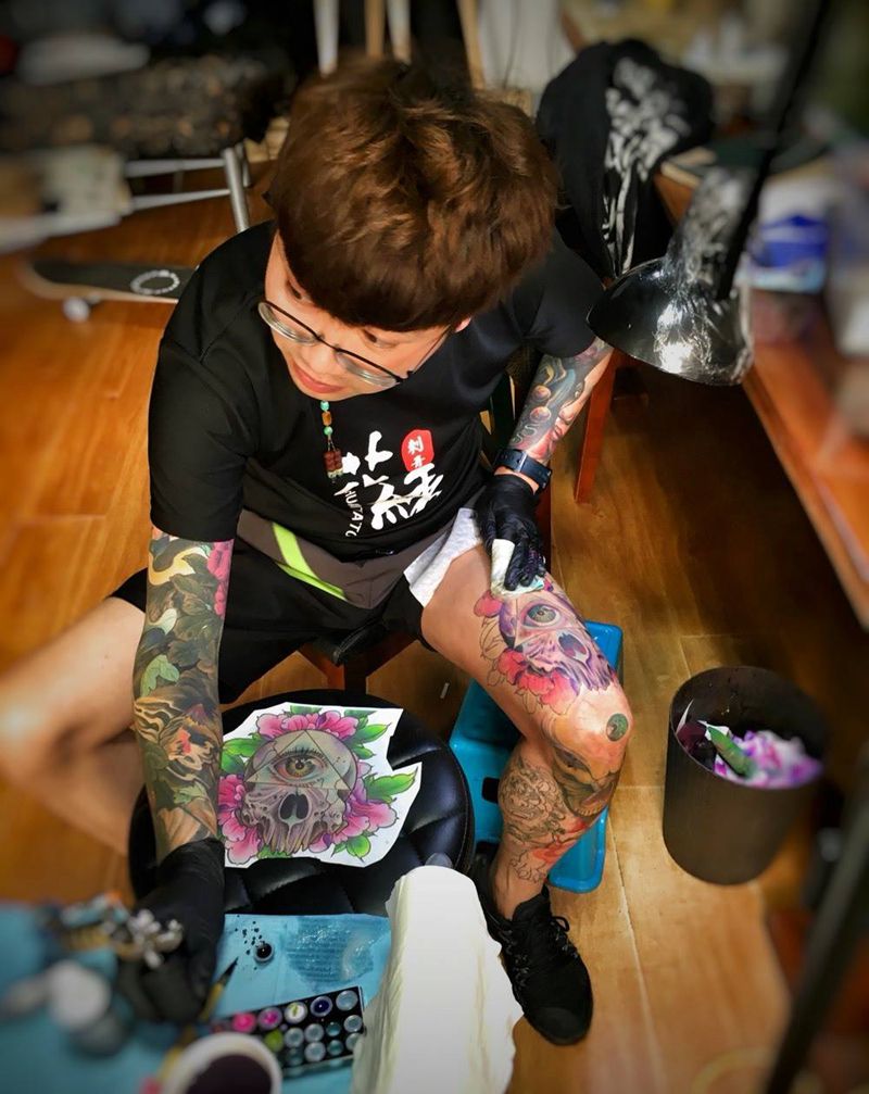 • T网红王老大花腿龙纹身图片_腿部新传统纹身图案