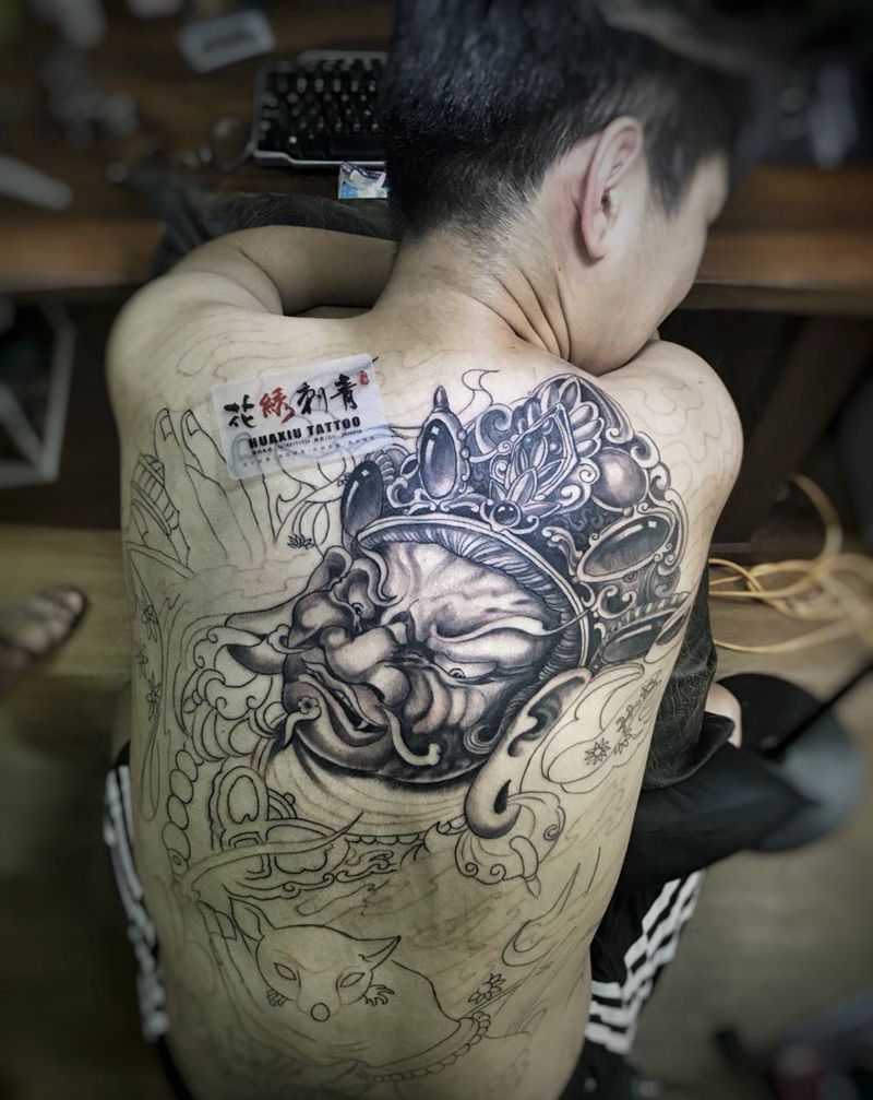当前位置: 首页 >山东省济南市纹身店-花绣刺青纹身图案>满背黄财神纹身图片_成品原创传统腿部腹部背部纹身图案
