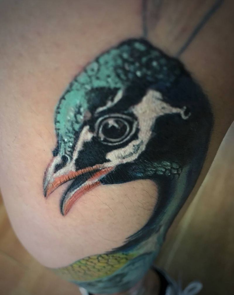 当前位置: 首页 >山东省济南市纹身店-花绣刺青纹身图案>孔雀遮盖蜘蛛纹身图片