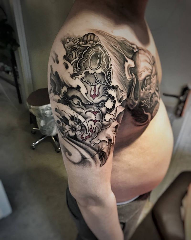 • 纹身吧推荐的披肩图腾半胛纹身图案作品展示