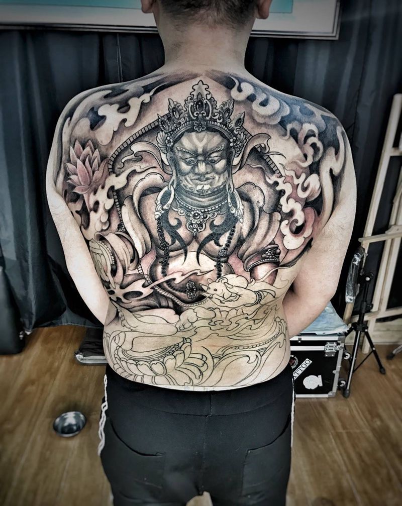 当前位置: 首页 >山东省济南市纹身店-花绣刺青纹身图案>满背黄财神纹身图片