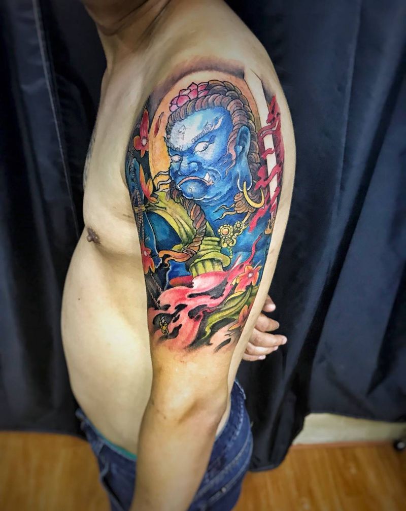 当前位置: 首页 >山东省济南市纹身店-花绣刺青纹身图案>大臂彩色冥王纹身图片