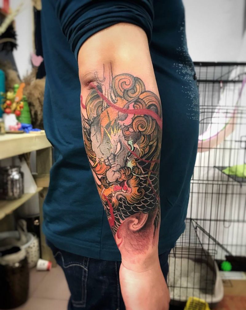• T网红王老大花腿龙纹身图片_腿部新传统纹身图案