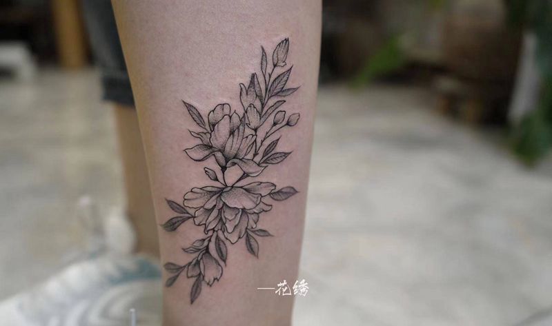素花纹身图片_腿部手臂点刺几何纹身图案
