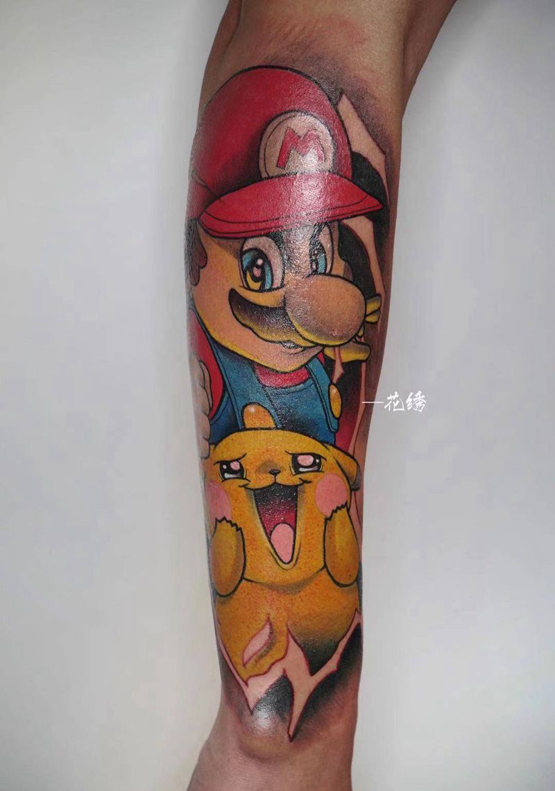 当前位置: 首页 >山东省济南市纹身店-花绣刺青纹身图案>马里奥与皮卡丘纹身图片_手臂腿部欧美写实New School纹身图案