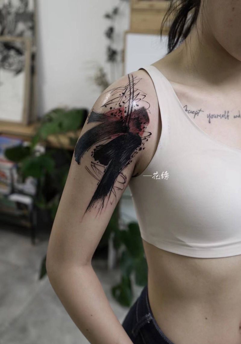 遮盖纹身图片_肩部背部几何水墨纹身图案