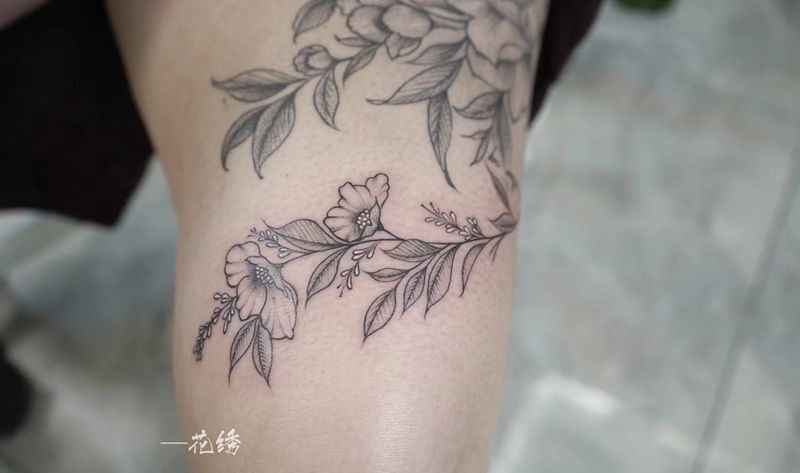 花儿纹身图片_腿部手臂几何欧美写实纹身图案