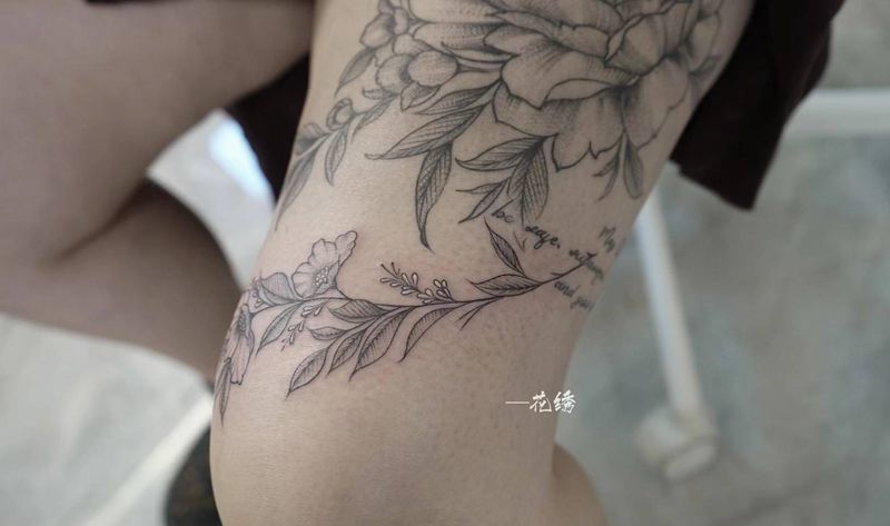 花儿纹身图片_腿部手臂几何欧美写实纹身图案