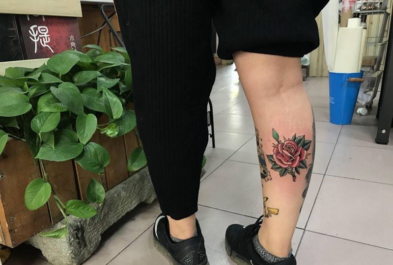 • T网红王老大花腿龙纹身图片_腿部新传统纹身图案