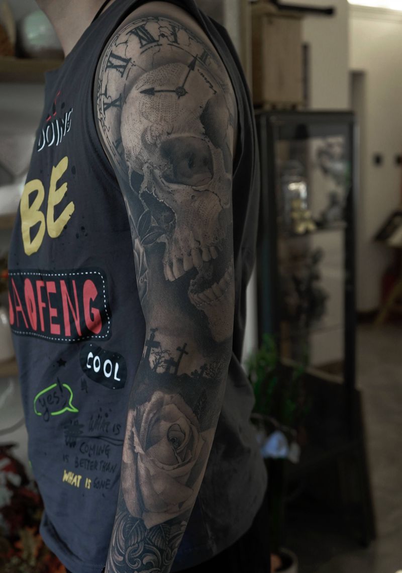 大花臂纹身图片_手臂手部欧美写实纹身图案
