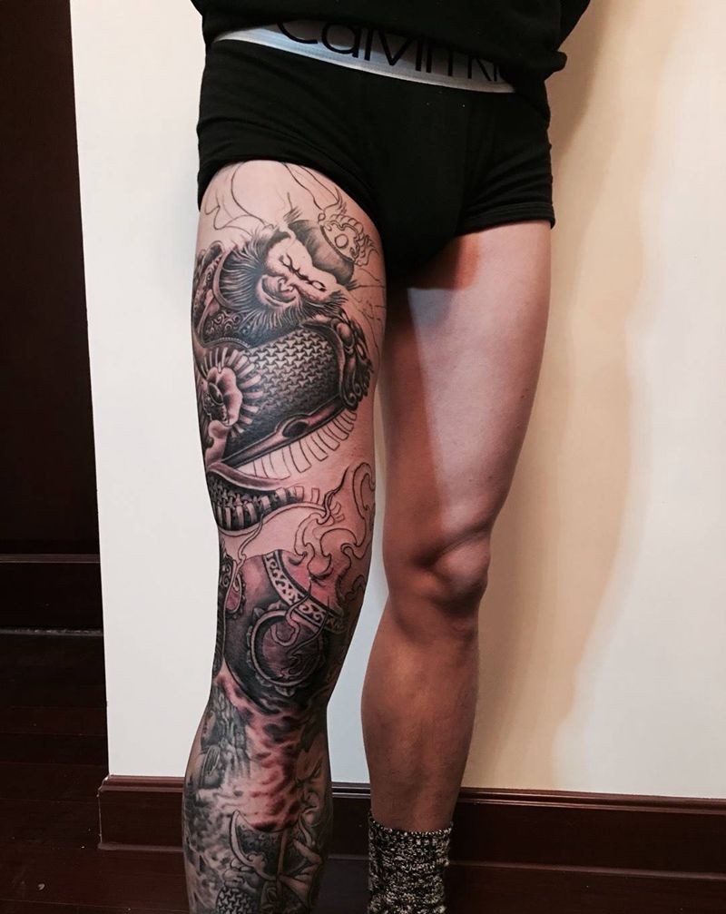 当前位置: 首页 >山东省济南市纹身店-翰墨刺青纹身图案>花腿齐天大圣纹身图片_齐天大圣腿部鬼神纹身图案