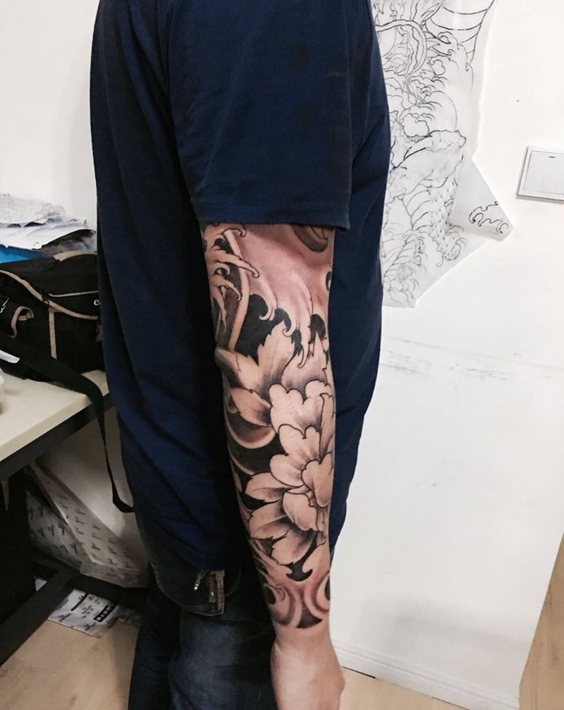 当前位置: 首页 >山东省济南市纹身店-翰墨刺青纹身图案>牡丹浪花纹身图片
