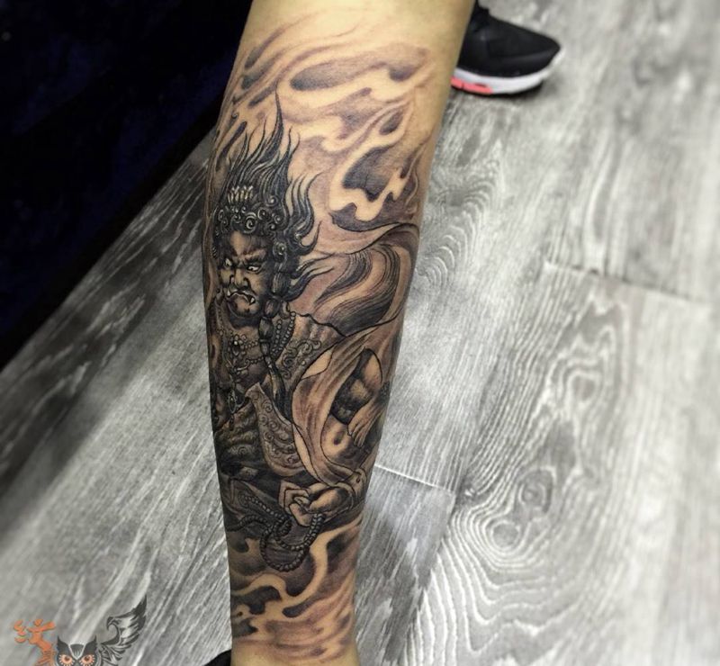 小腿单侧 不动尊纹身图片_成品腿部传统宗教纹身图案