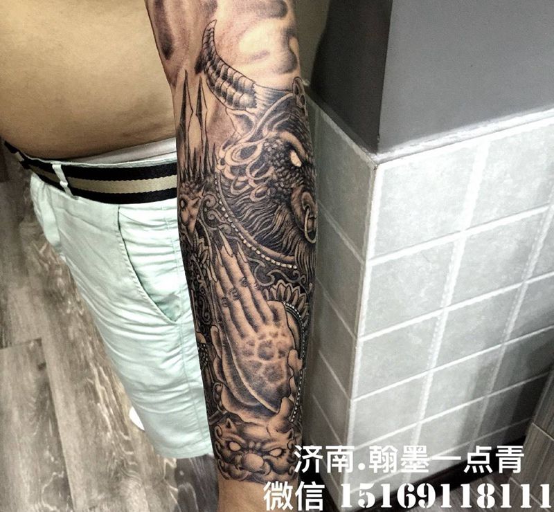 当前位置: 首页 >山东省济南市纹身店-翰墨刺青纹身图案>牛魔王纹身图片_手臂传统宗教纹身图案